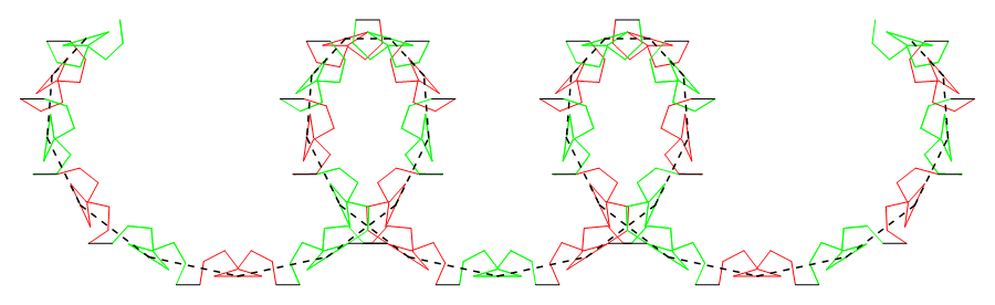 in these patterns, the center of every motif lies on the same curve, a