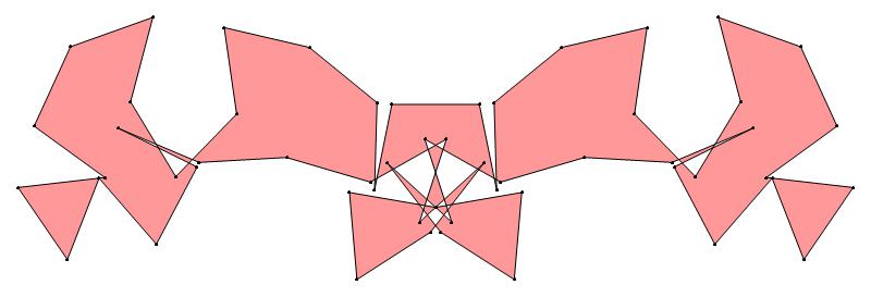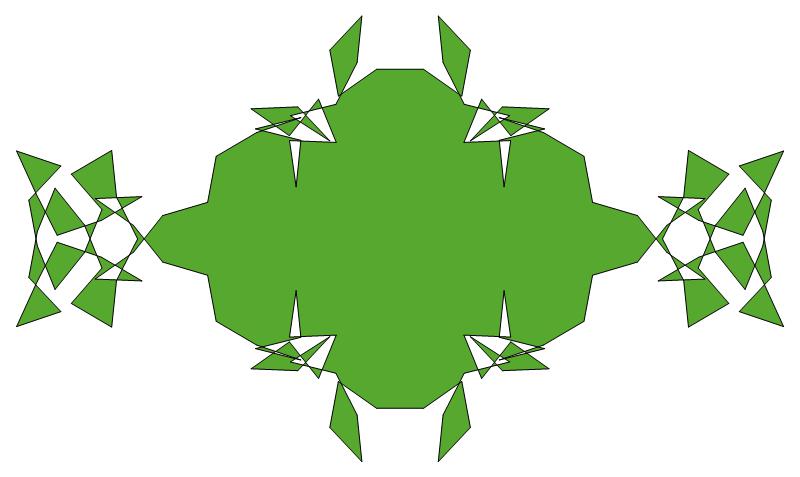 seven replicas of the six-edged pattern motif M. The horizontal linking