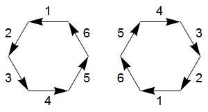 the left is the associated unlinked d6-symmetric pattern.